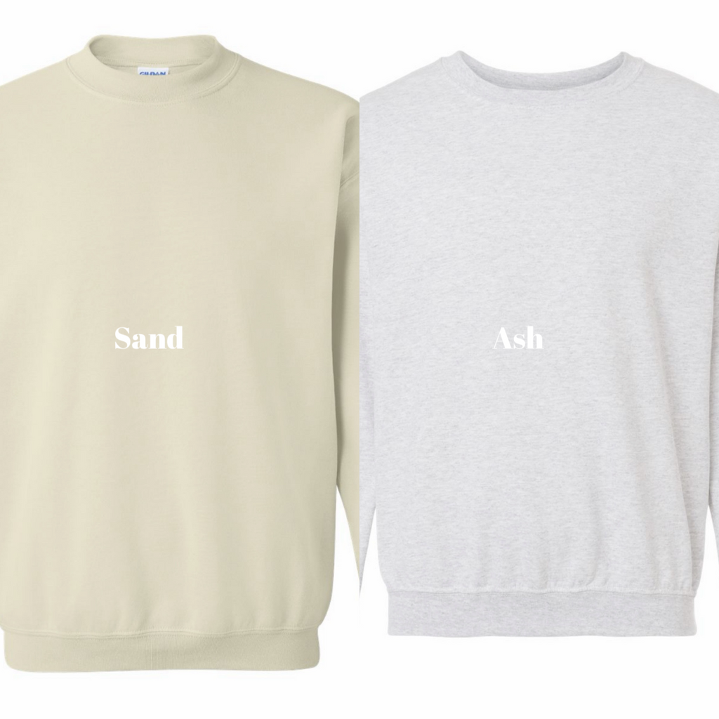 Cogsworth crewneck Sweatshirt. This custom sweatshirt is completely embroidered on a Gildan heavy blend 50/50. You will have the color option of ash or sand .