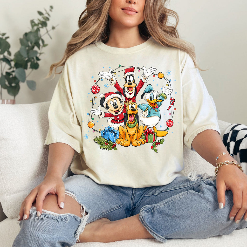 Dis Xmas design. DTF (Direct to film) printed directly on your garment. These are done on Comfort Color T-shirts which are custom dyed 100% ring spun cotton. Sizing on these is true to size. If you want a more oversized fit, size up. If you want a natural fit then get your normal size. (Please see size chart provided).